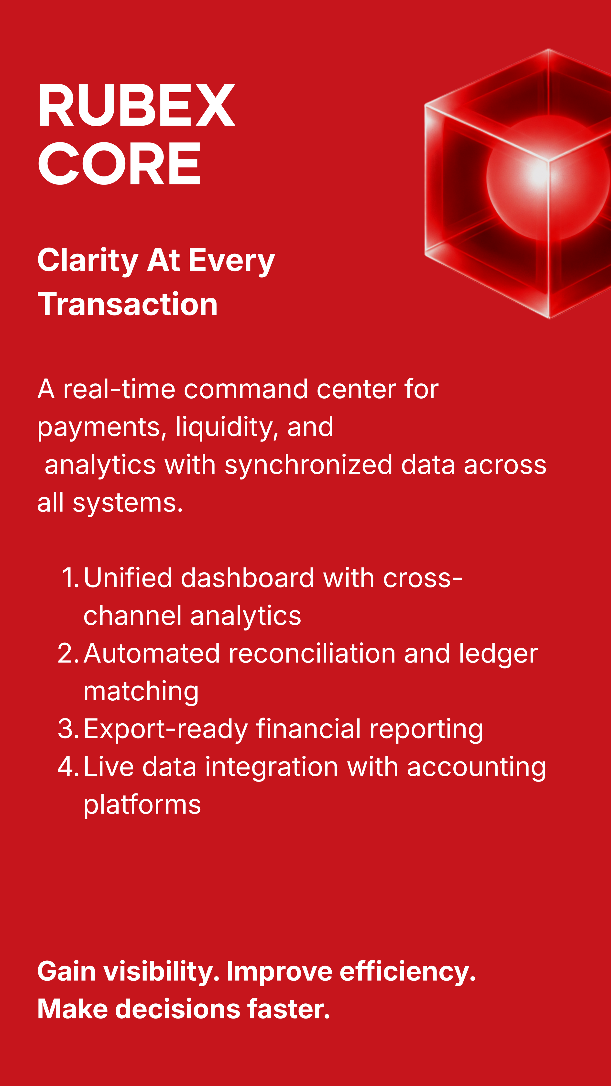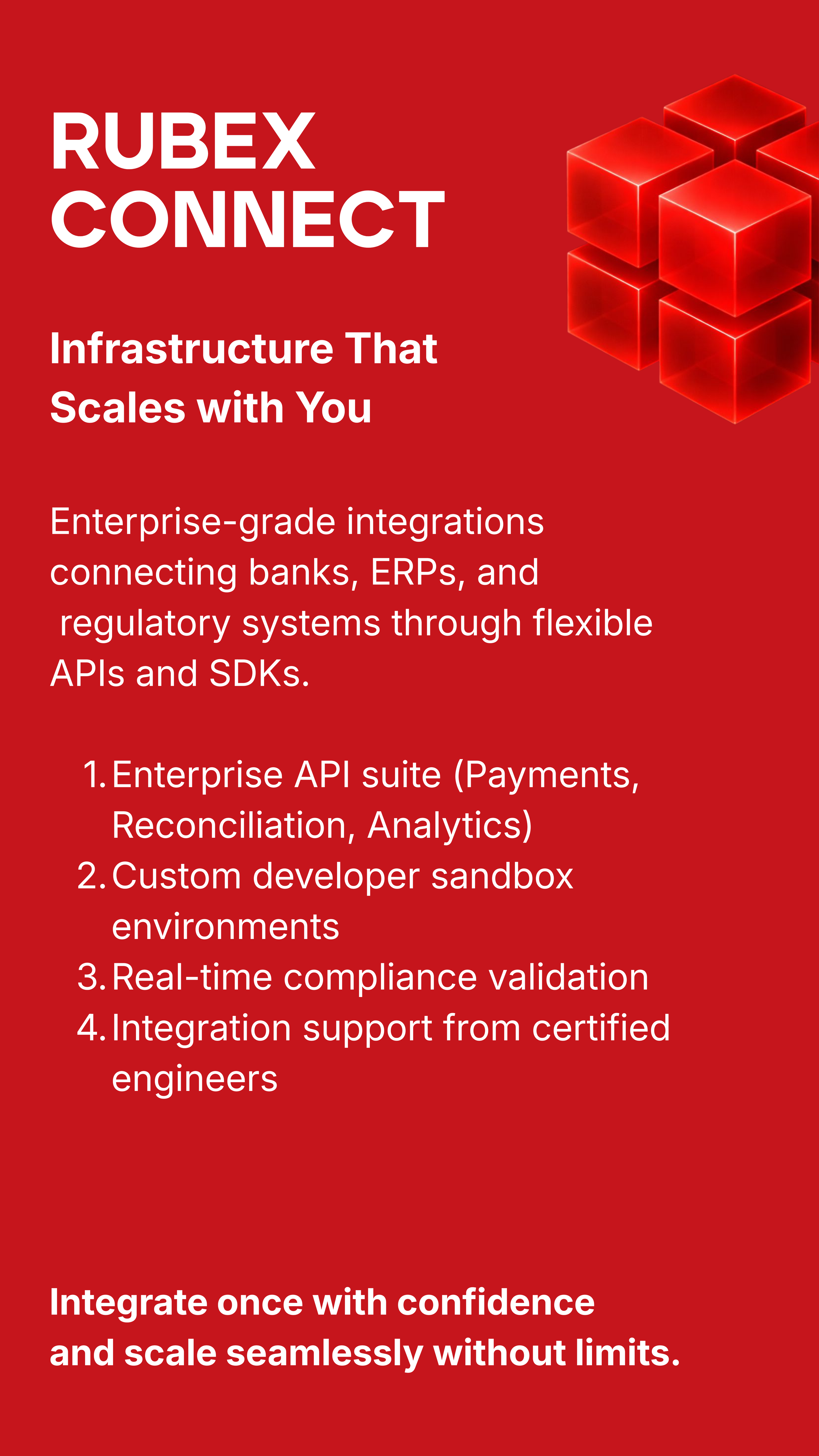 RubexPay empowers enterprises to modernize financial operations, unlock efficiency, and build trust through compliance-ready infrastructure.